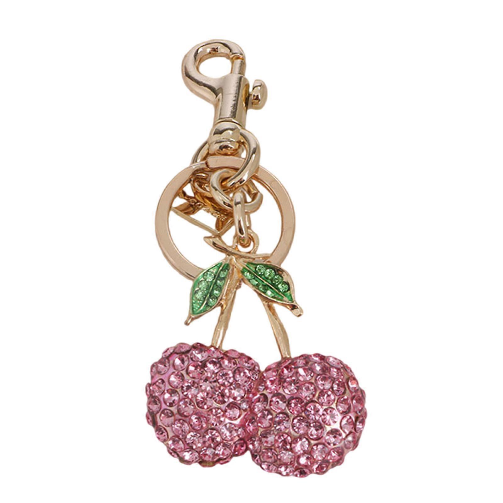 Fashion Rhinestones Cherries Charm Keychain Haning Ornament Keyring Sweet Cool Pendant Decoration for Bag Backpack Pink
