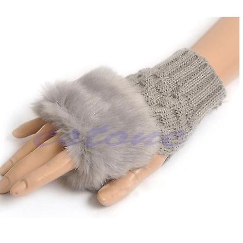 Fashion Winter Arm Warmer Fingerless Gloves Knitted Fur Trim Gloves Mitten Hot