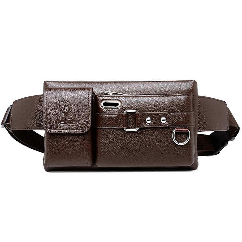 Fashion Single-Shoulder Multi-Function Large Capacity Waist Bag Men's Chest Bags Brown