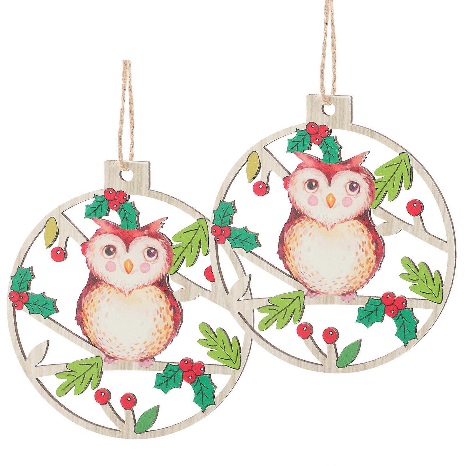 Unique Ornaments Wood Slices Hanging Christmas Pendants Christmas Tree Decorations 11x10cm Assorted Color Festive Design 2Pcs