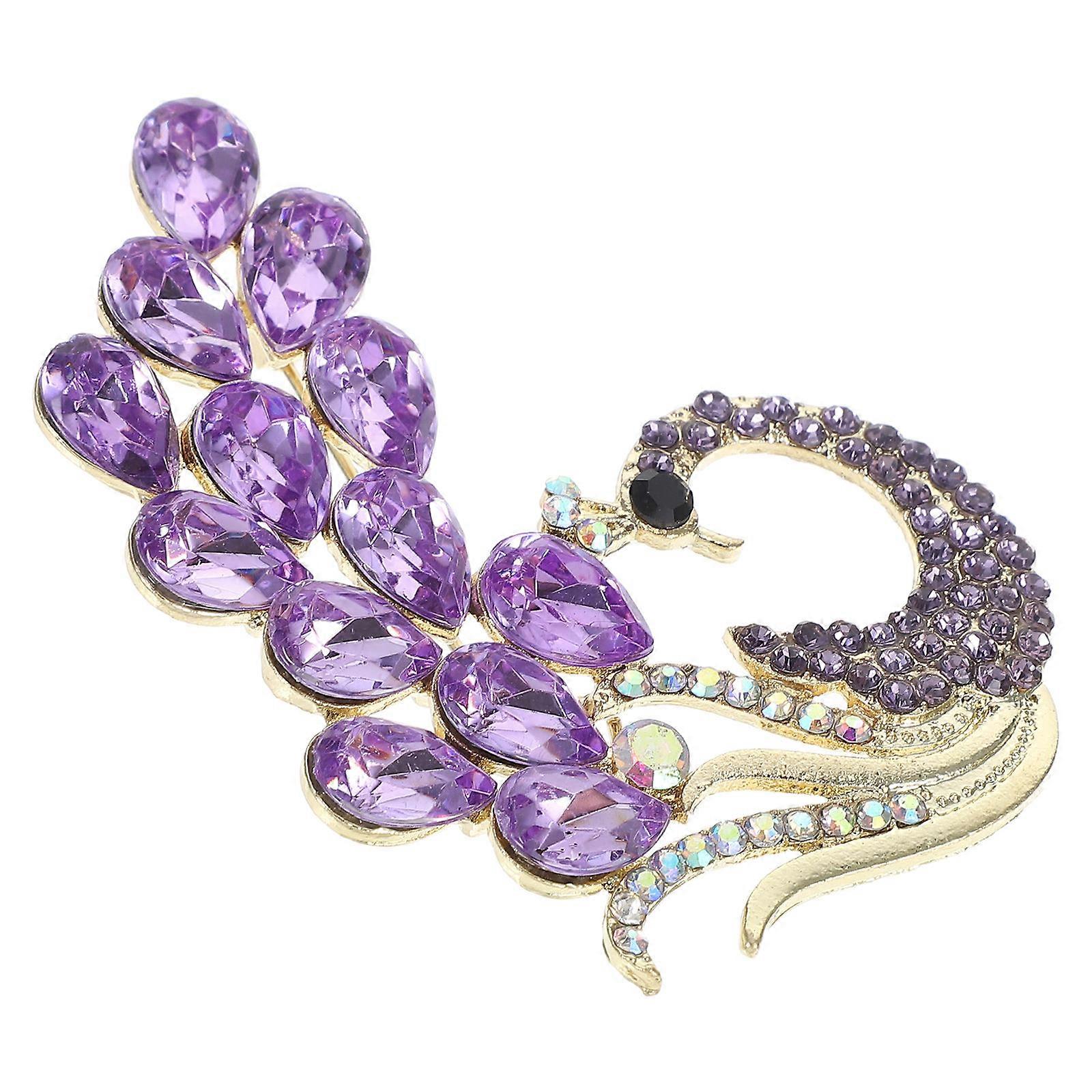 Unique Brooch For Women Peacock Pin Rhinestone Jewelry Accessory For Formal Events Purple 1Pcs