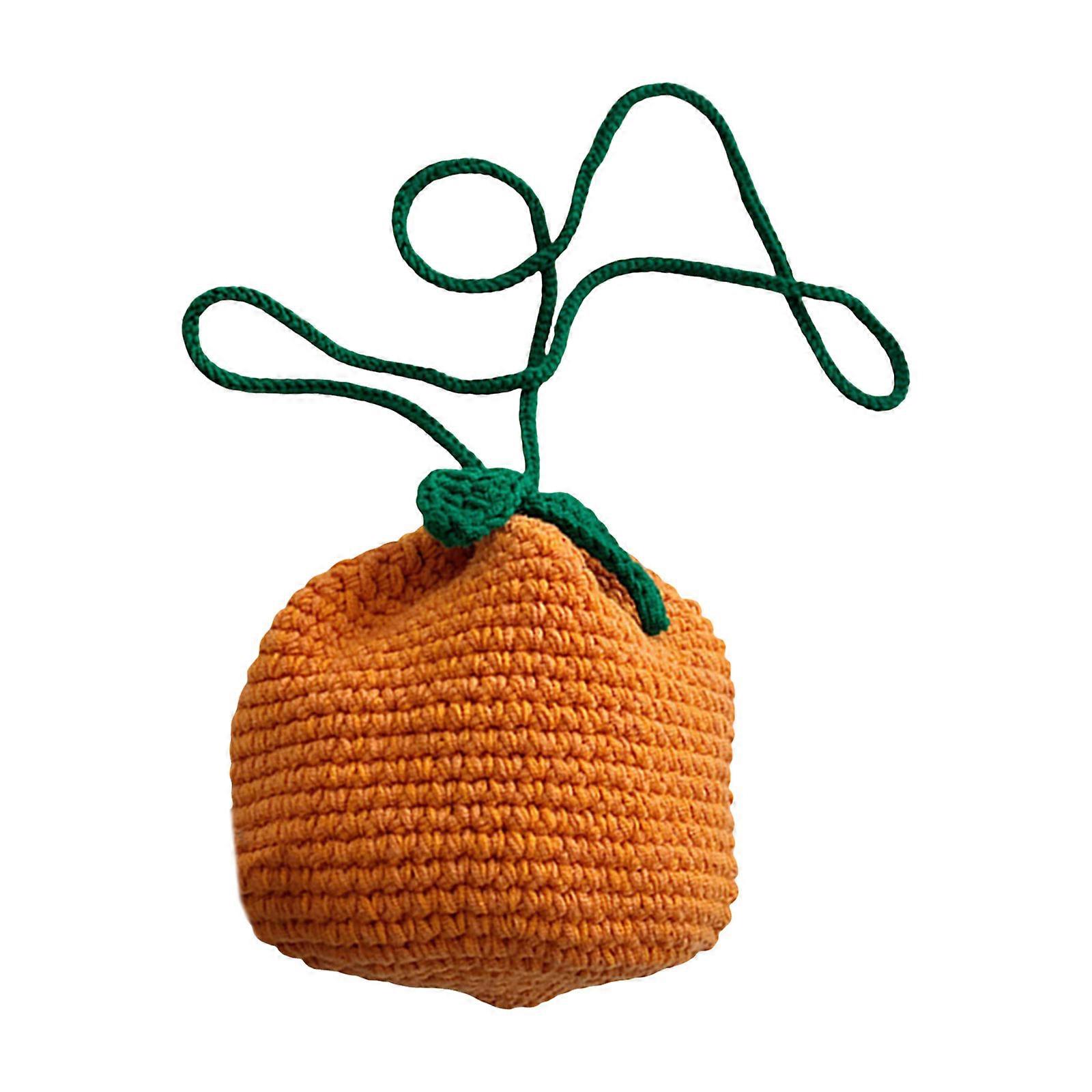 Unique Crochet Tangerine Bag Crossbody Purse Drawstring Shoulder Bags for Fashionable Adults and Craft Enthusiasts orange