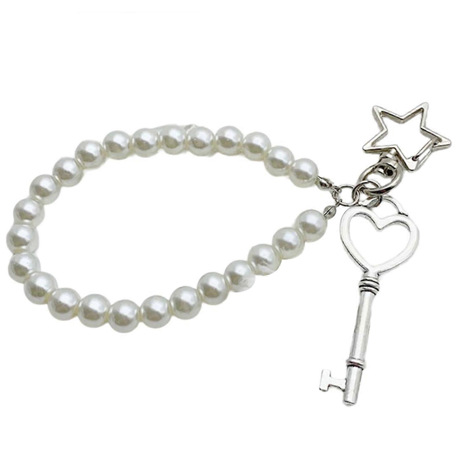 Unique Phone Lanyard Simple Beaded Bowknot/Heart/Key Pendant Key Phone Accessory Phone Key Phone Lanyard Pendant