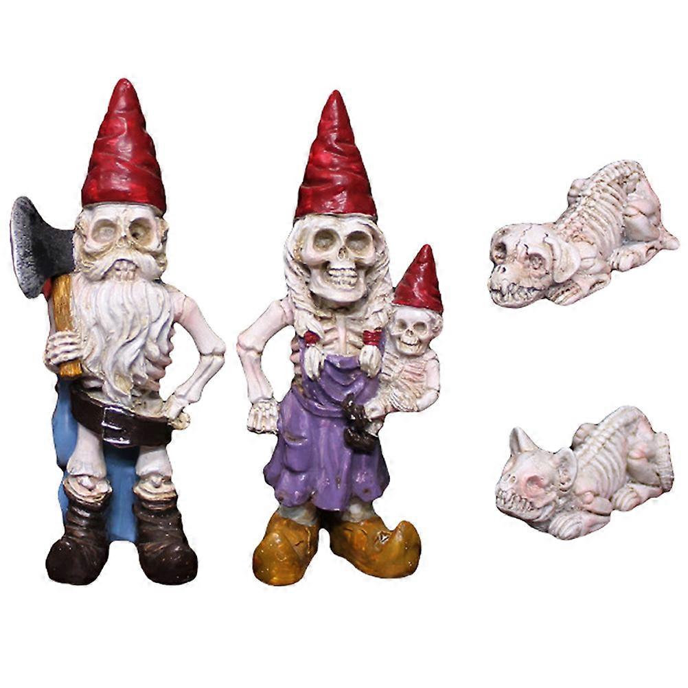 Unique Skull Statues Decor Resin Skeleton Statue Lawn Ornament Compact Size Assorted Color 4Pcs