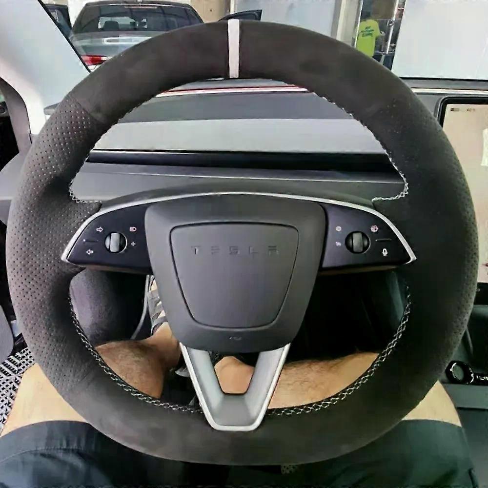unique Custom Car Steering Wheel Cover Anti-Slip And Soft Sueder Leather For Tesla New Model 3 2023 Tesla Highland Avant Steering Wrap