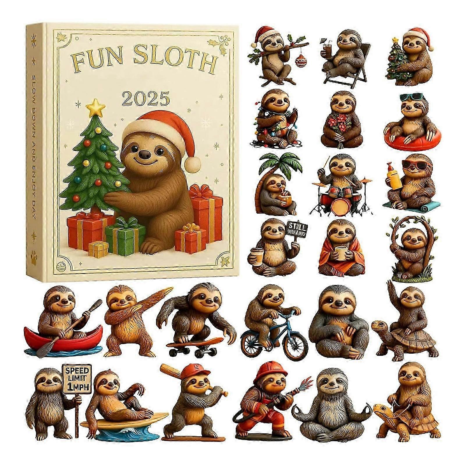 Unique 2D Sloth Advents Calendar Present Lovely Cartoon Figure Present Box for Christmas Tree Adornment