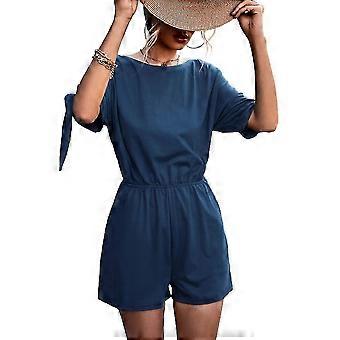 Solid Color Short Jumpsuit Casual Half-sleeve Tie One-piece Pants For Women LGDV