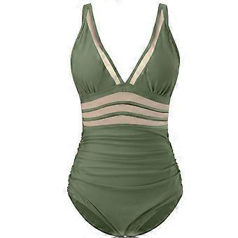 Solid-Color Deep V Neck Mesh Hollow Swimsuit Quick Drying Comfy Soft Swimwear for Swimming Pool