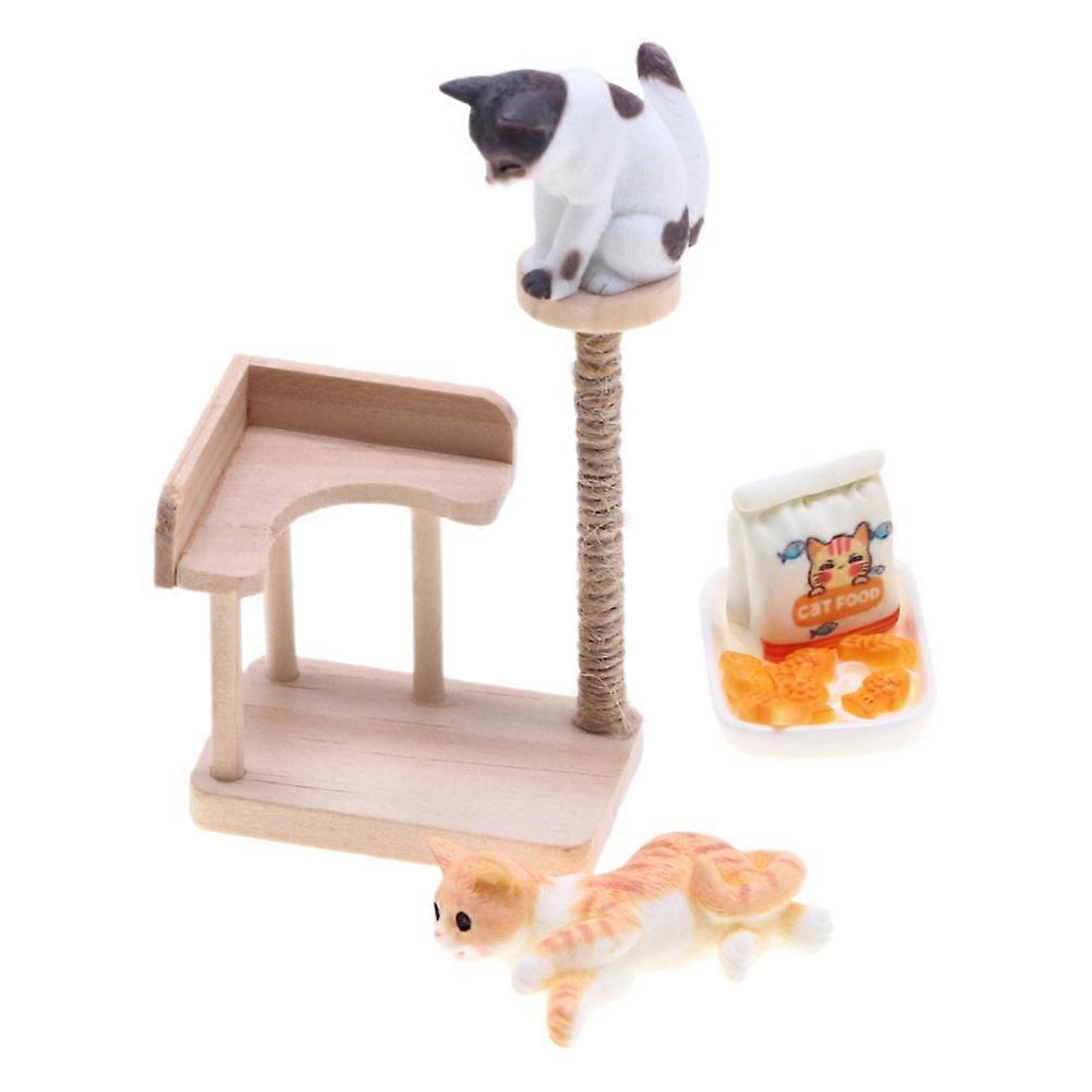 Cat Climbing Tower Model for Doll House Decoration 1Set Wooden Miniature Toy