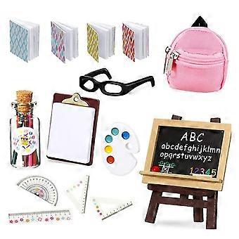 Fashionable Doll School Supply Kit, Eco Friendly Materials Handmade Quality Zipper Design Doll Accessories for Dollhouse Decoration (16x13x4cm)