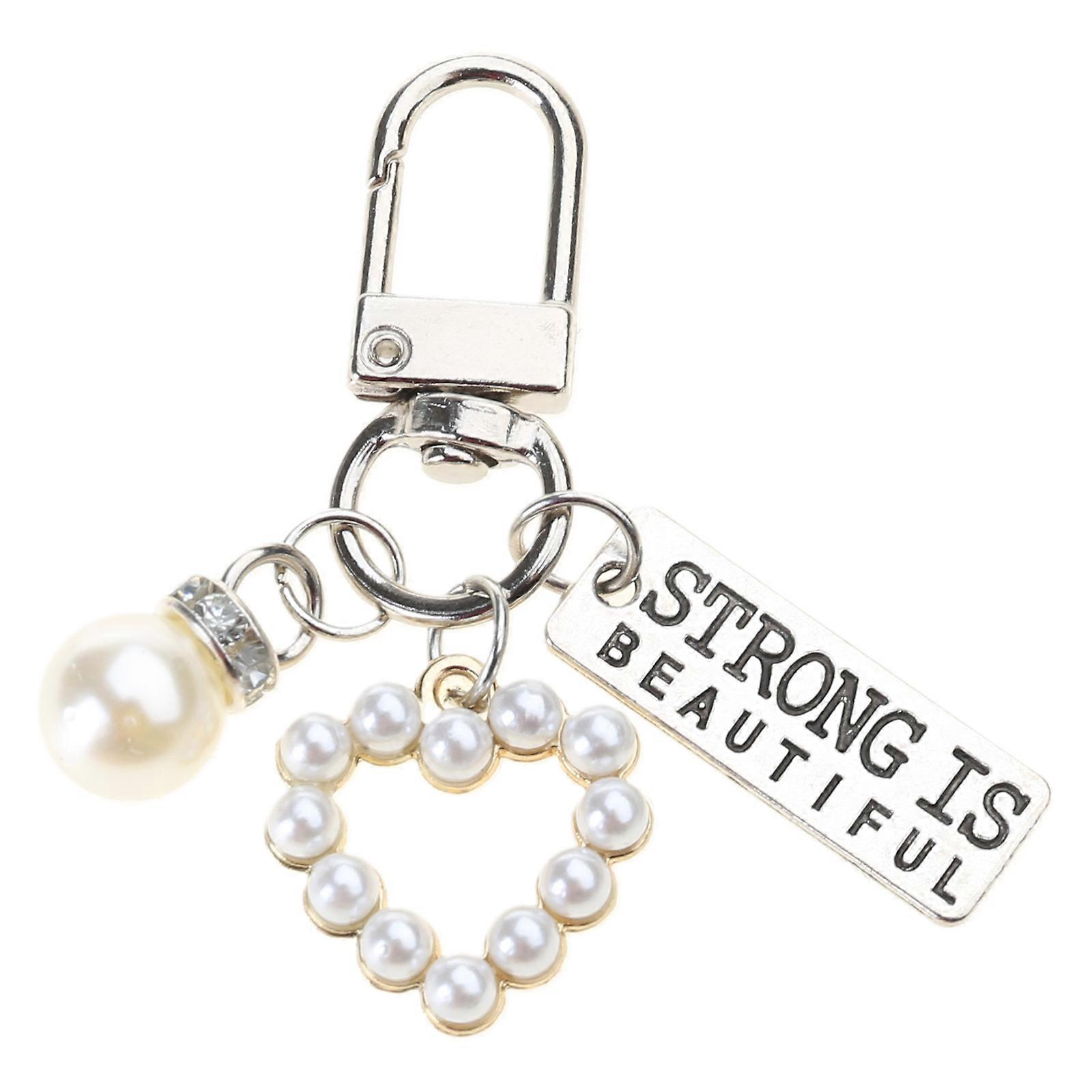 Fashionable Heart Pendant Keychain Charmj with Pearls Sturdy Alloy Acrylic Key Holder Accessory for Daily Wear