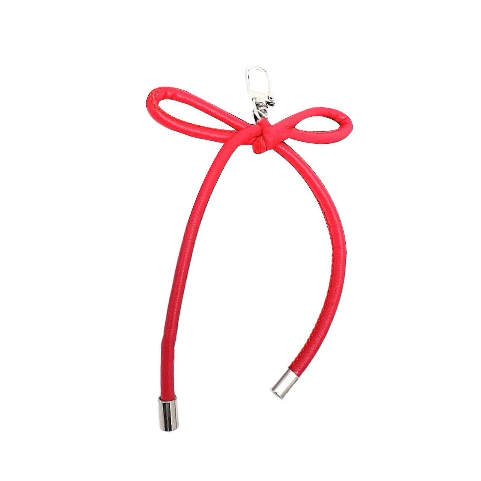 Elegant Keychain Charm with PU Leather Bowknot Details for Women Girls Handmade Keyring Backpack Pendant Jewelry Gift Red