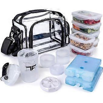 Μονωμένο Δοχείο Γεύματος με 6 Δοχεία Ελέγχου Μερίδων, Διανομέα, Δοχείο Σέικερ & Πακέτα Πάγου - , , Κατάλληλο για Φούρνο Μικροκυμάτων, Κατάλληλο για Κατάψυξη - Μπλε Βαρέως Τύπου