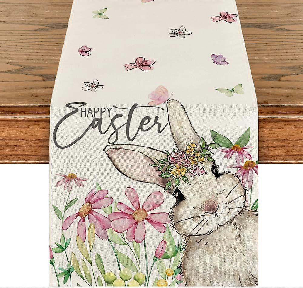Pattern Daisy Bunny Easter tablecloth, seasonal spring kitchen table decoration, suitable for home party decoration 33*183cm