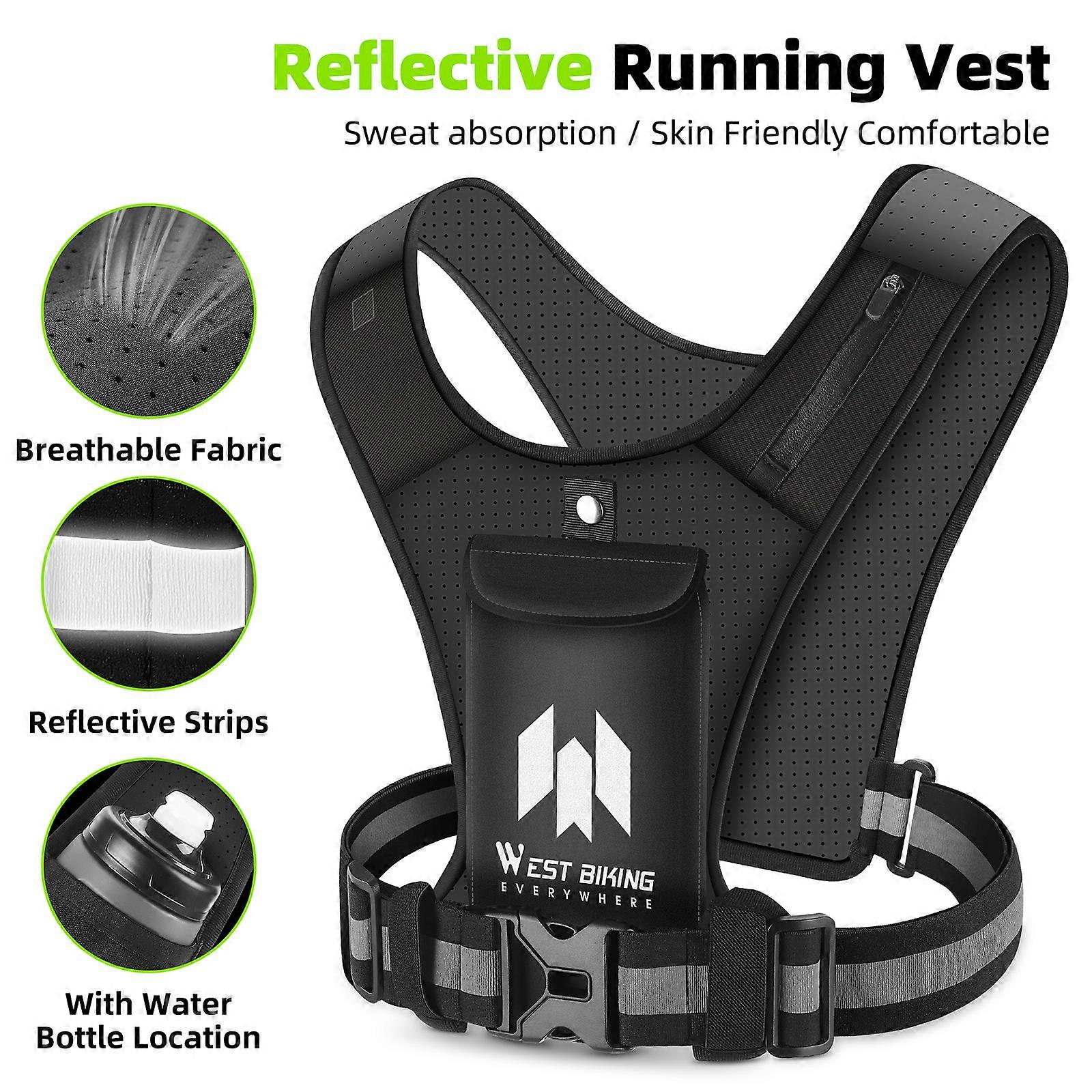 Motorcycle Riding Bike Cycle Reflective Vest High Visibility Running Vest With PhoneHolder Water Bottle Bag Safety Night Sports Vest