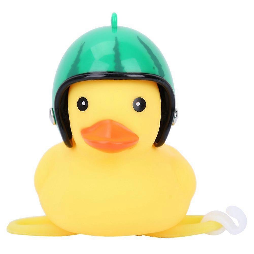 Motorcycle Cute Little Yellow Duck with Helmet Mountain Bike Bicycle Decoration GreenYMQX)