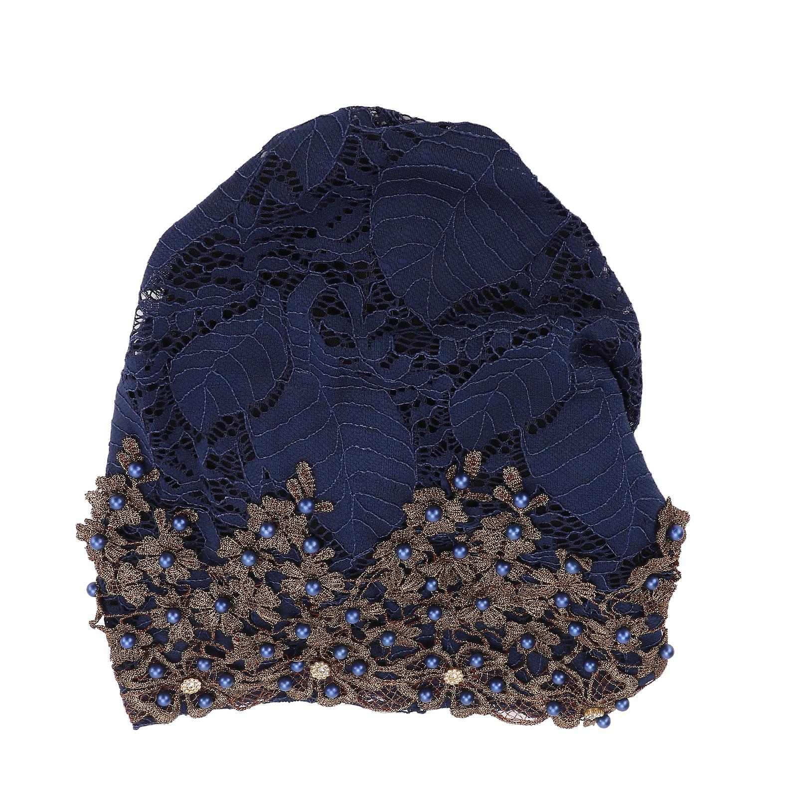 Muslim Turban Hat Vintage Embroidered Beading Design Soft Lightweight Stretch Head Wrap for Daily Use WorshipDark Blue