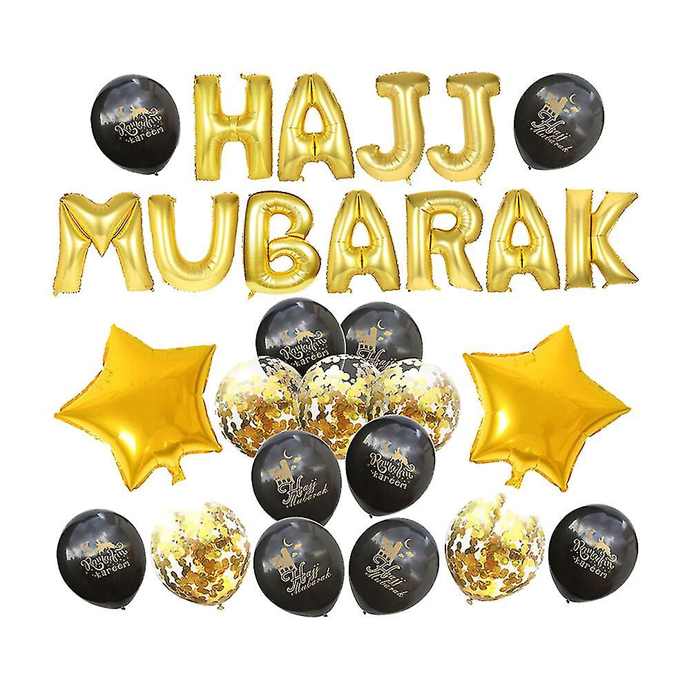 HAJJ MUBARAK Letter Latex Balloons Decorative Celebrative Background Layout Balloons Set for Eid Al-Fitr (Black and Glod)