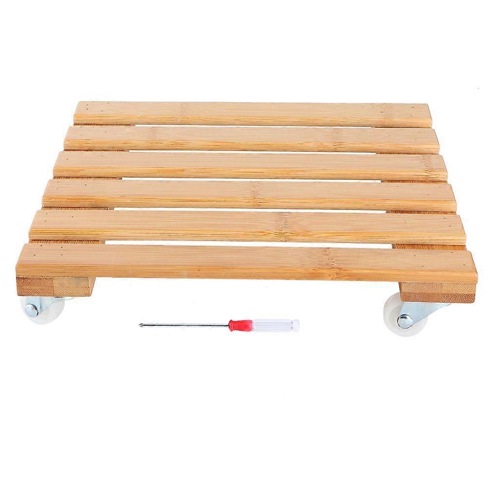 Bamboo Movable Potted Plant Flower Shelf Storage Rack Tray with Wheels for Outdoor Patio Garden