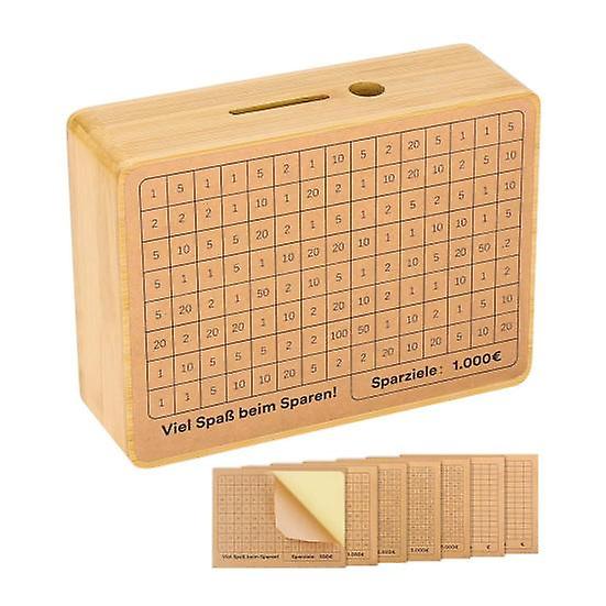 Bamboo Wood Money Box with Counter Target Number Sticker Large Capacity Piggy Bank Coin Cash Container Kids Adults Money Saving Challenges Case