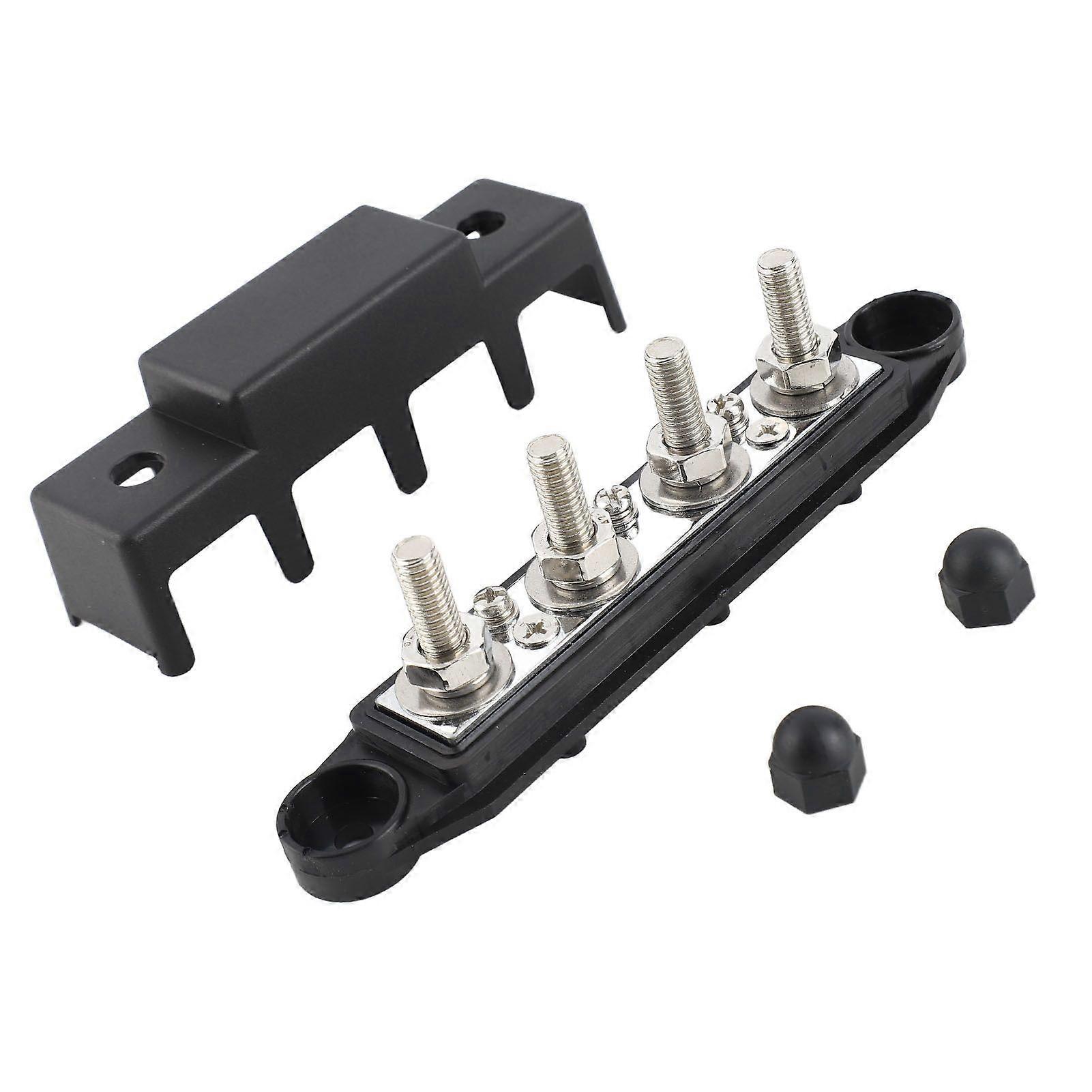 4 Post Power Distribution Block Bus Bar with Cover M8 Terminal Studs 250 Amp Rating for Marine Automotive RV Black