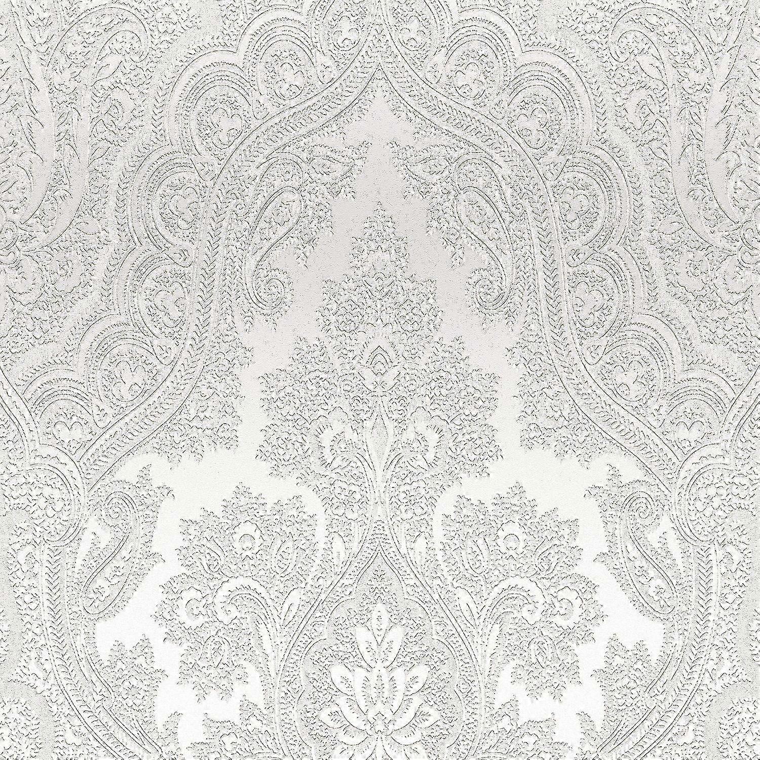 Barok behang Profhome 387084-GU vliesbehang hardvinyl warmdruk in reliëf glad in barok stijl glinsterend grijs parelmoer-lichtgrijs 5,33 m2