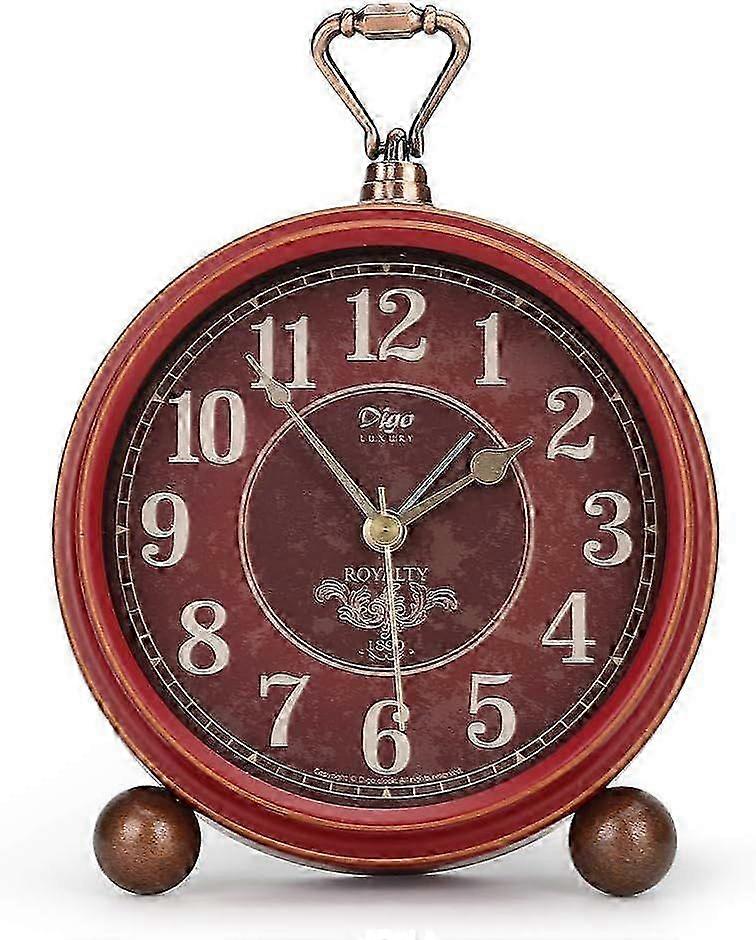 Battery-Powered Silent Quartz Movement Retro Table Clock with Red Vintage Design and HD Glass for SBSG Number-One Classic