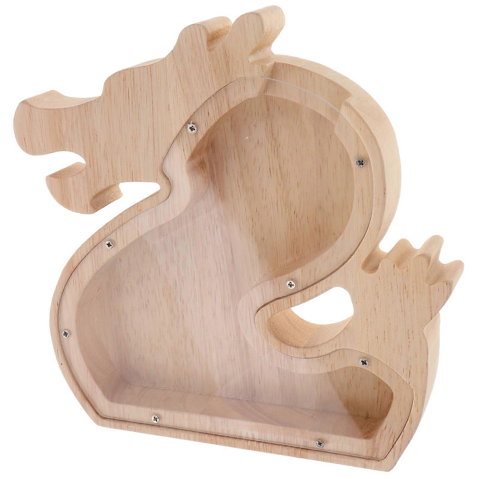 Beige Wooden Dragon Piggy Bank for Storage Kids Coin Saving Box