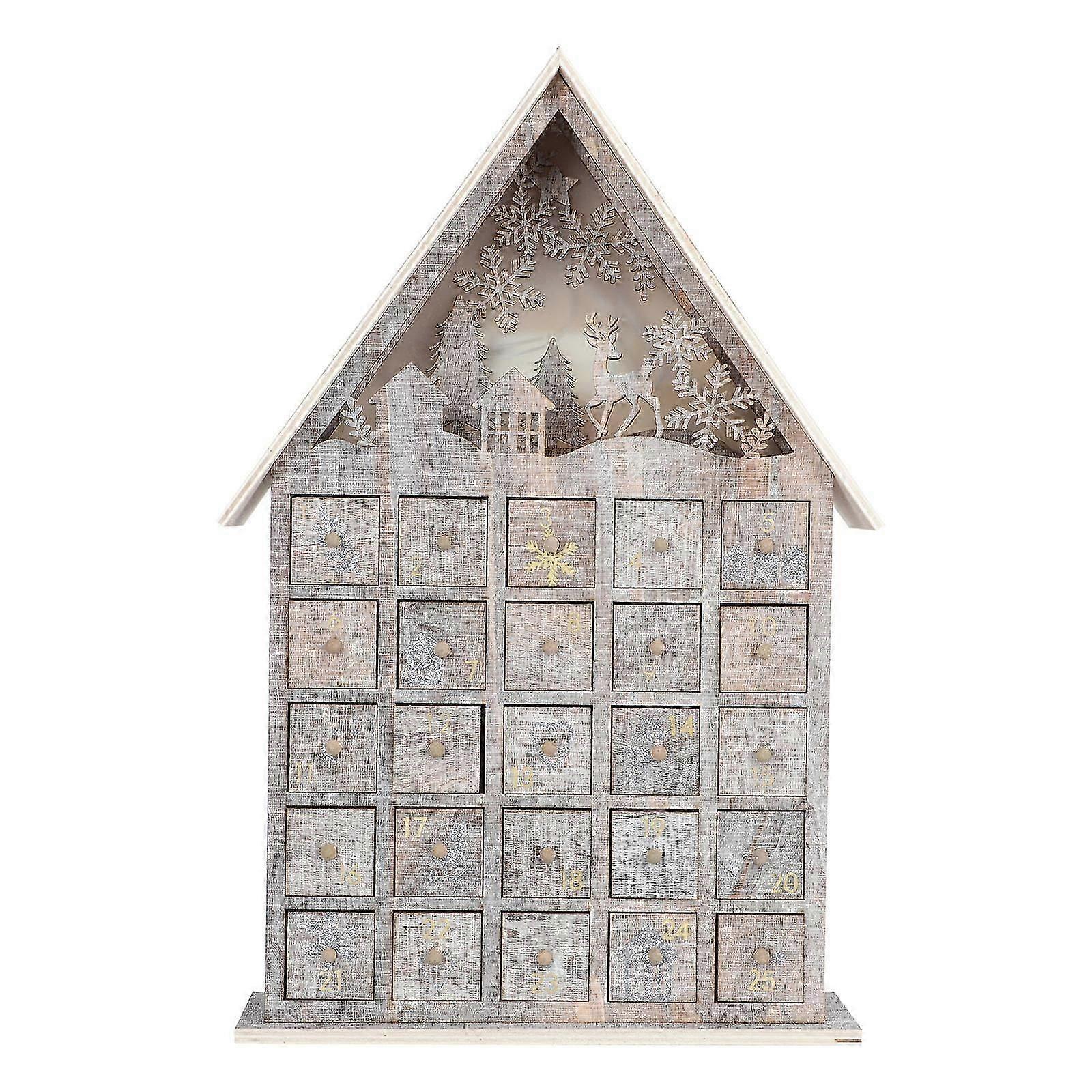 Are you still looking for special decorations for Christmas, a good way to express your wishes for Christmas? This wooden house shaped calendar would be for you. Lovely Christmas theme design, add fun for Christmas, light up the festive atmosphere, make your home more beautiful. Features - Color: Beige. - Material: Wood. - Size: 37.50X25.00X6.00cm/14.74X9.82X2.36inch. - House shape countdown calendar drawer are big enough for containing small items of the cookie, candy, treat, or other small things like jewelry, Christmas party favors, etc. - This advent calendar is a fun family activity to the days until Christmas arrives. - Great for place on the desktop, study room, bedroom, etc. pretty outlook and very eye-catching. - It is a wonderful Xmas ornament. Increase the festival atmosphere for the family. - With the delicate and chic luminous design, it will look so wonderful at night. Package list: 1 x Xmas adornment
