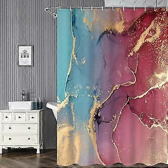 Μπλε και κόκκινη μαρμάρινη κουρτίνα ντους μπάνιου Ακουαρέλα αφηρημένη χρυσή κουρτίνα λουτρών άμμου με γάντζους Αδιάβροχες κουρτίνες ντους υφάσματος πολυεστέρα για τη λειτουργία