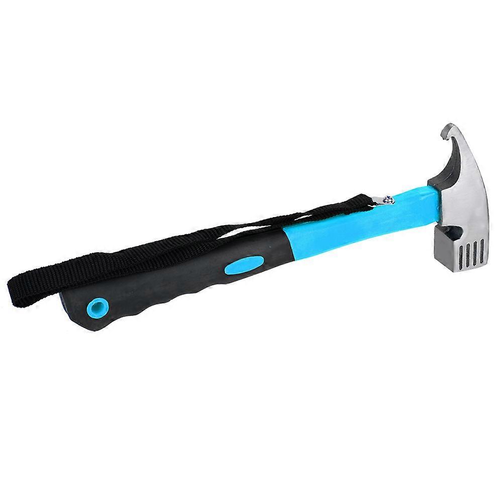 Blue Camping Hammer with Steel Head, Rubber Grip, and Lanyard
