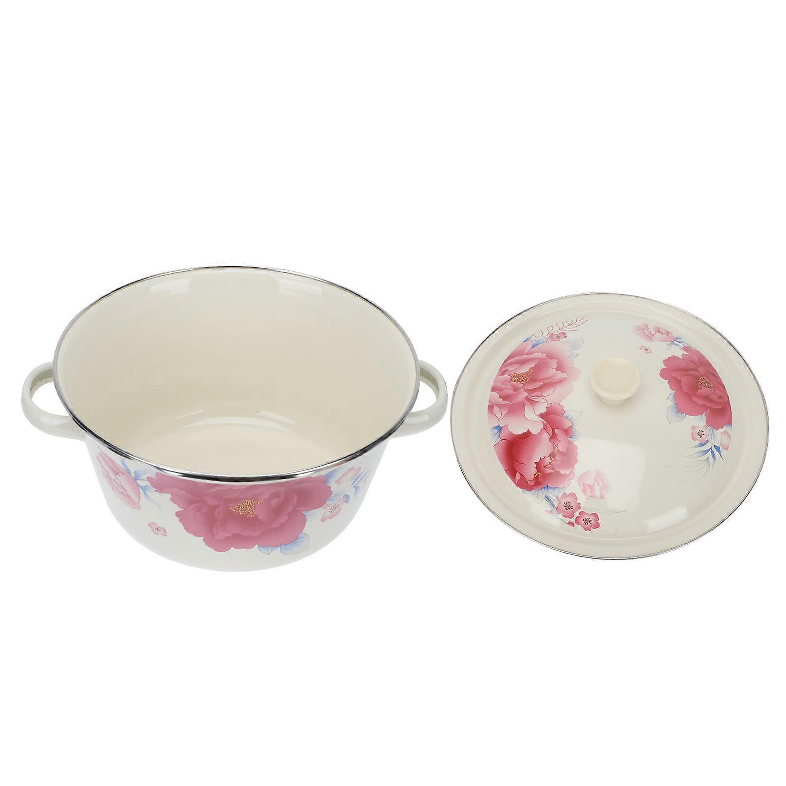 Enamel Mixing Bowl with Lid Retro Design for Gift Giving Friends Family 10.6×9.4×5.7Inch Dumpling Stuffing Holder 1Pc