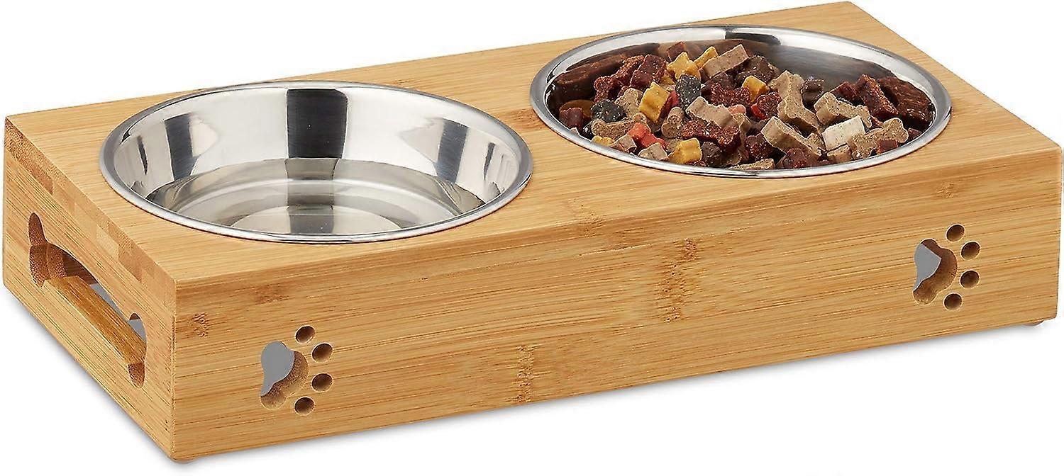 Bowl for Dogs, 2 bowls of 300 ML, Bamboo & Natural/Silver Stainless Steel, Natural Bamboo, Double,2024 Ping
