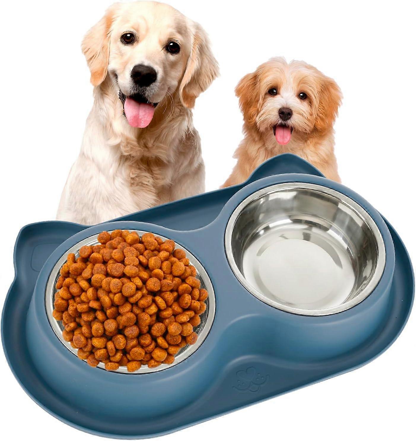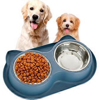 Dog Bowl Double Dog Water Food Bowl Stainless Steel Bowl Non-slip Pet Puppy Kitten Bowl Suitable for Small and Medium Dogs (Blue)
