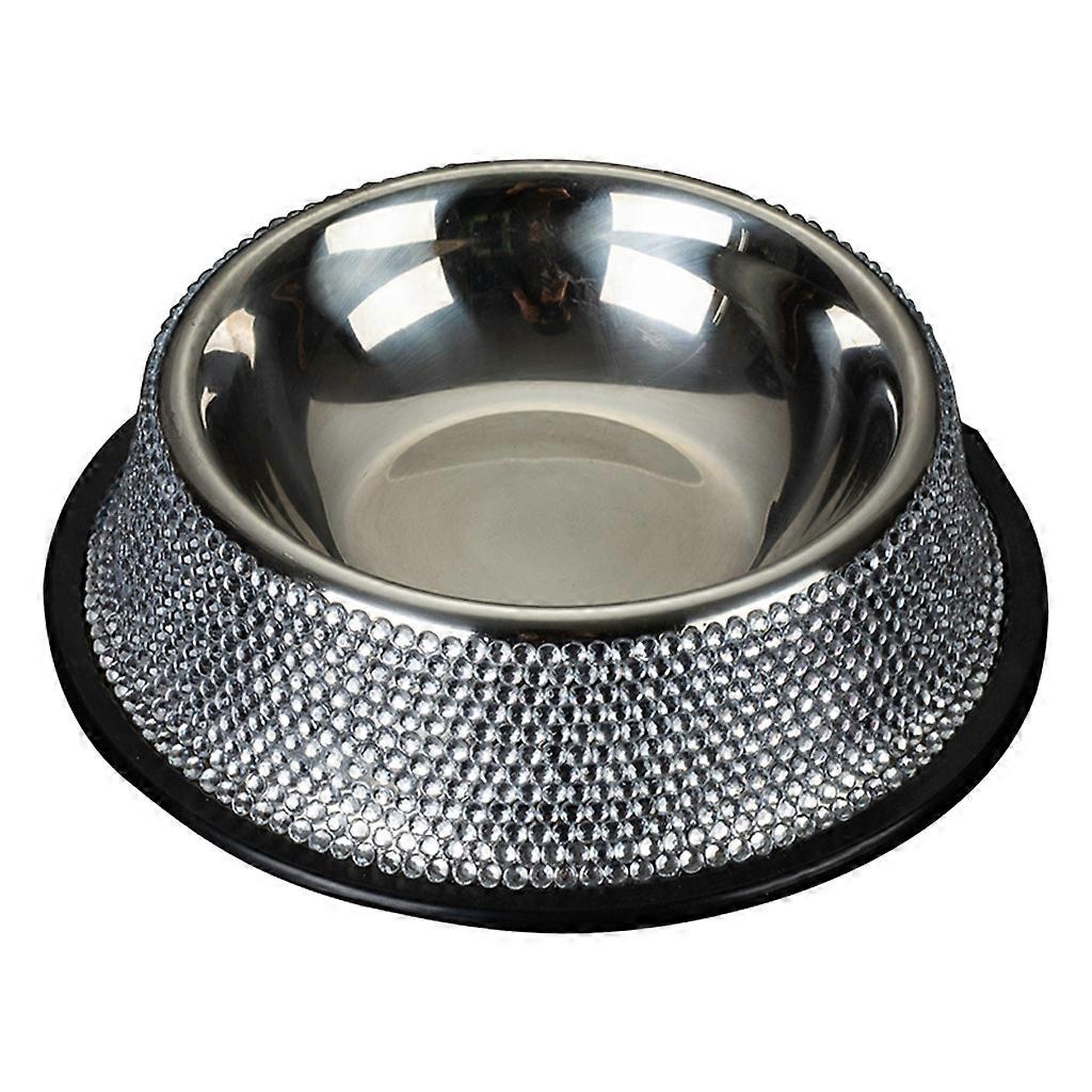 Dog Feeding Bowls Stainless Steel Feeder Bowl with Rhinestones for Dogs Cats