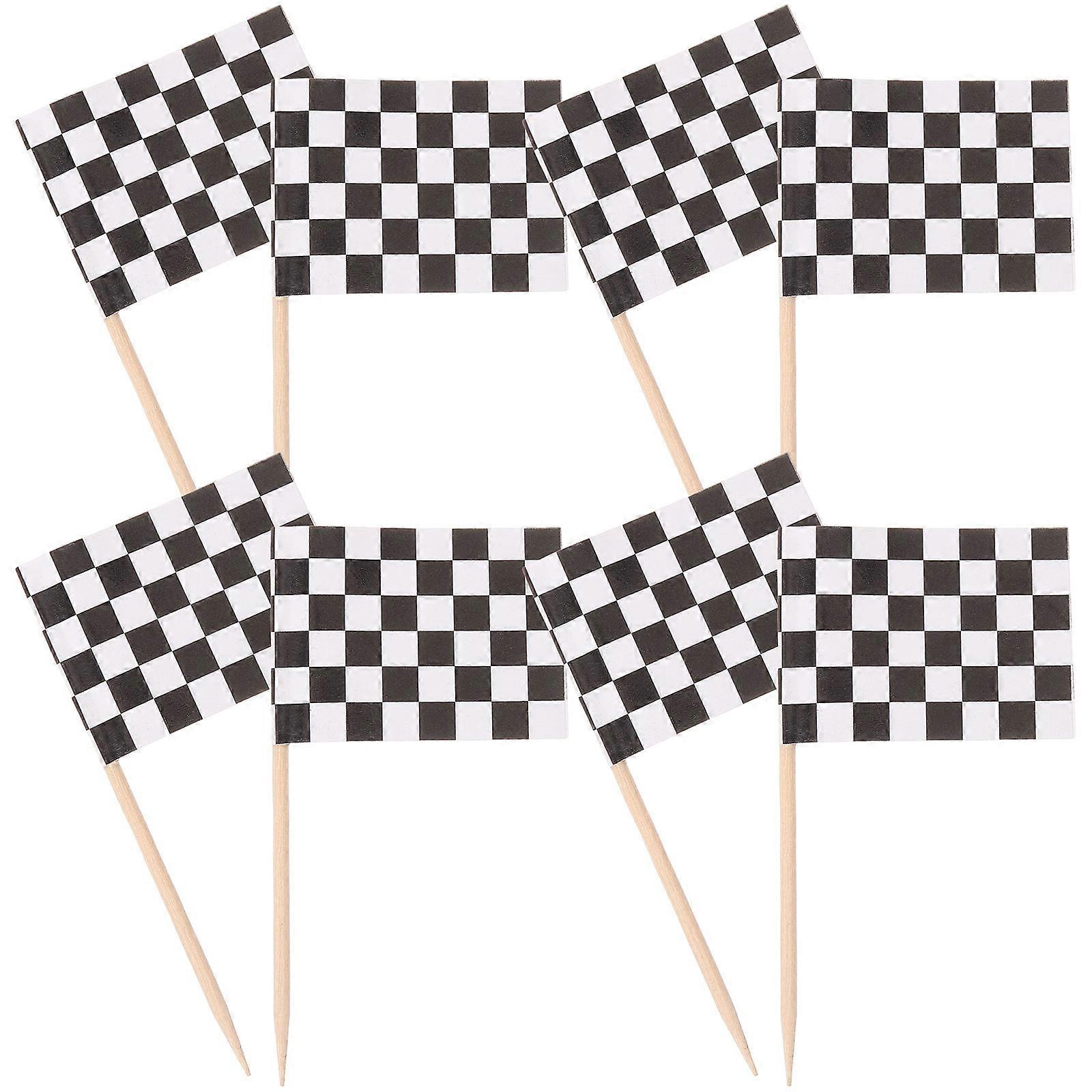 Racing Checkered Flag Party Favors Black White Flags Cake Picks Decoration Fruit Garnish Square 1.3x0.9 Inch Flag 2.6 Inch Length 100Set