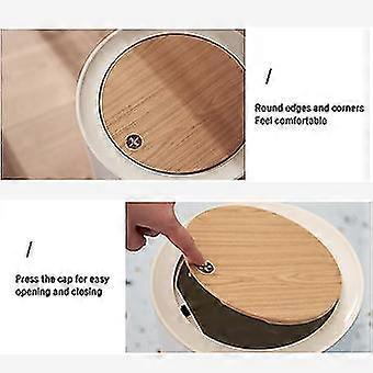 Features: _x000D_Practical Design: The trash can has a high leg design, and the bottom is stable without shaking. The surface of the lid is designed with simulated wood grain, and inner has a pressing ring, which can cover the dustbin bag without affecting the appearance of the trash can. _x000D_Easy e: This garbage can has a cover that can block out the odor of some garbage. Adopting a press design, the cover can be easily open. Saving effort. The cover can be disassembled, so that the dustbin bag can be easily replaced. _x000D_Material: The trash can is made of ABS material, it is waterproof, moisture-proof, durable, and can be used in damp environments. It won't take up too much space. _x000D_Different Styles: These trash cans have a simple exterior design, with various capacities and styles to choose from. Some trash cans are used on the ground, while others are used on the desktop. Meet different space usage needs. _x000D_Widely Used: Garbage bins can be used in kitchens, living rooms, bedrooms, bathrooms, toilets, offices, hotels, coffee shops, and other places. Perfect integration of decoration styles for various occasions. _x000D_ _x000D_ _x000D_Specifications: _x000D_Product name: trash can _x000D_Material: ABS _x000D_Color: White _x000D_Model/Size (L x W)/Capacity: _x000D_Type 1/2: Size: 363mm x 220mm/ 14.3in x 8.66in, Capacity: 7L _x000D_Type 3: Size: 332mmx213mm/13inx 8.4in, Capacity: 10L _x000D_Type 4: Size: 107mmx195mm/ 4.21inx 7.68in, Capacity: 2L _x000D_Type 5: Size: 190mmx120mm/ 7.48inx 4.72in, Capacity: 2L