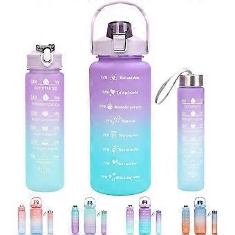 Water Bottle with Straw 3 Pcs, 64oz 32oz 16oz Time Marker Large Drinking Bottles