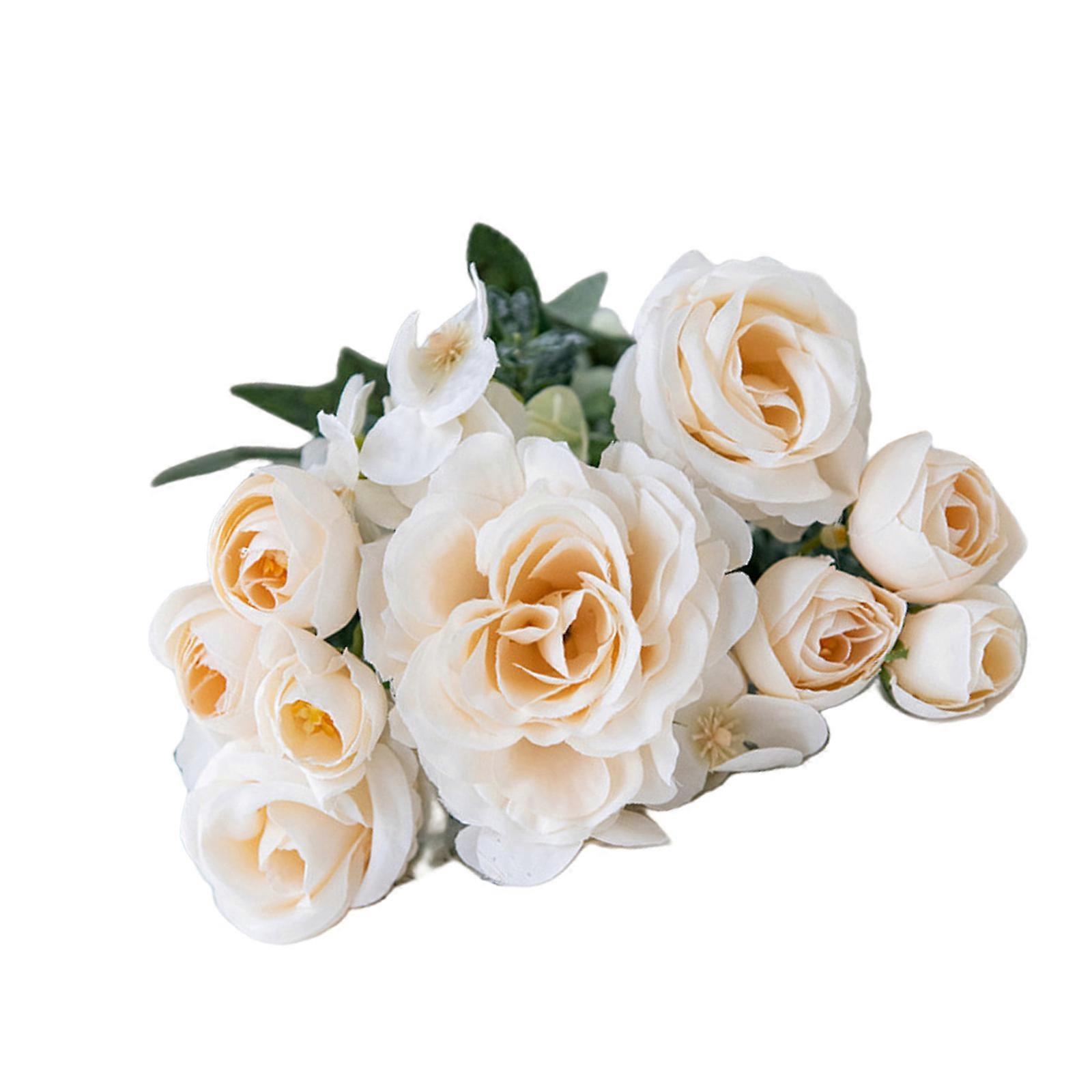 Nordics Style Faux Floral Bouquets 7 Rose Head Flower Bouquets Polyester Home Wedding Party Decoration Accessory White