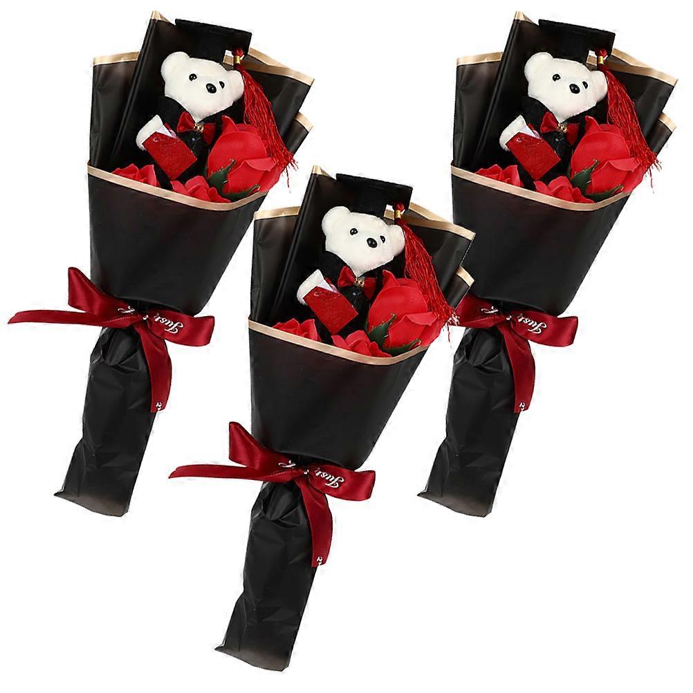 Graduation Bear Flower Bouquet With Foam Plastic Cloth For Photography Session Friends Family Graduates 36X16X8CM Photo Props 3Pcs