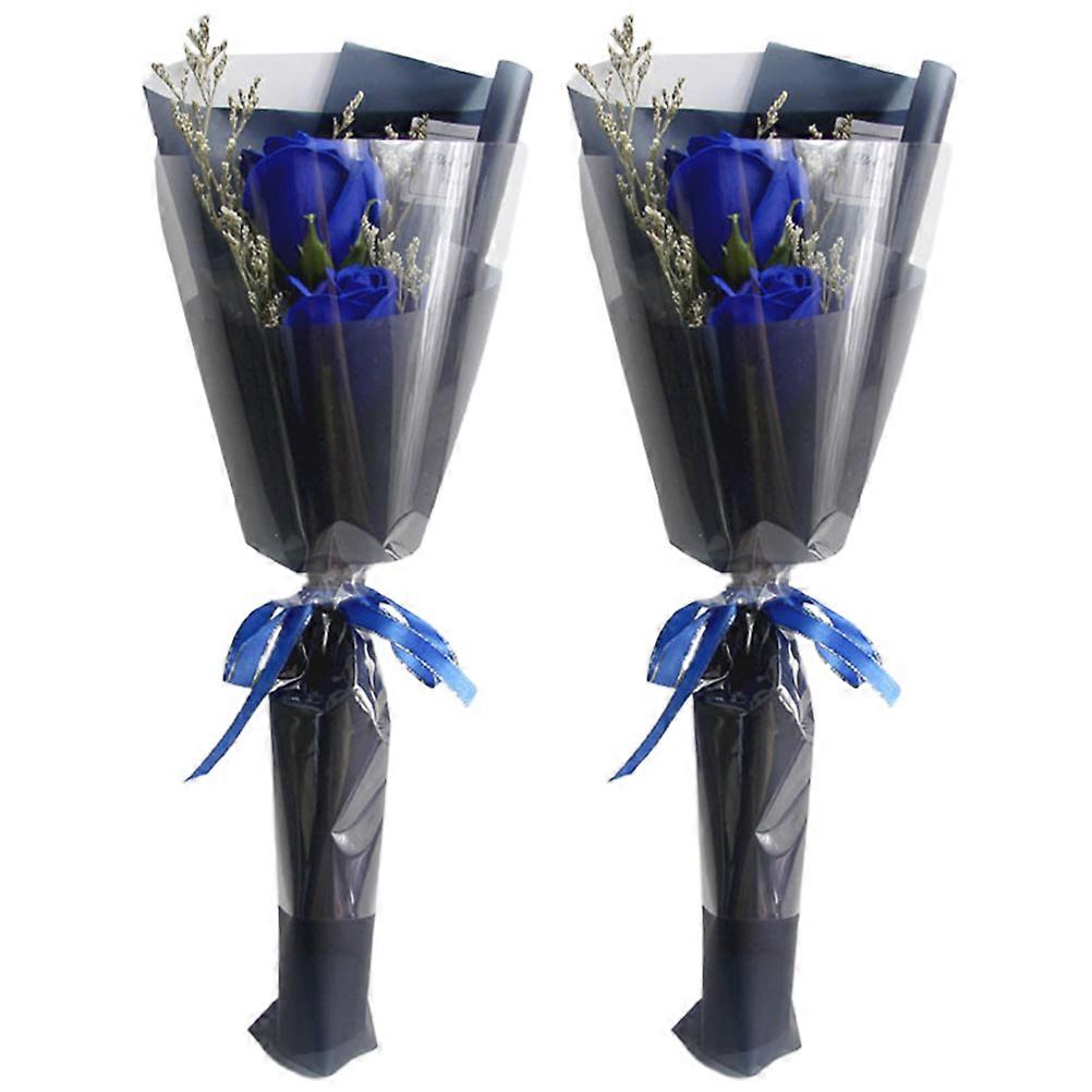 Blue Rose Soap Flower Bouquet for Decoration 2Pcs Eternal Flower Gift Soap