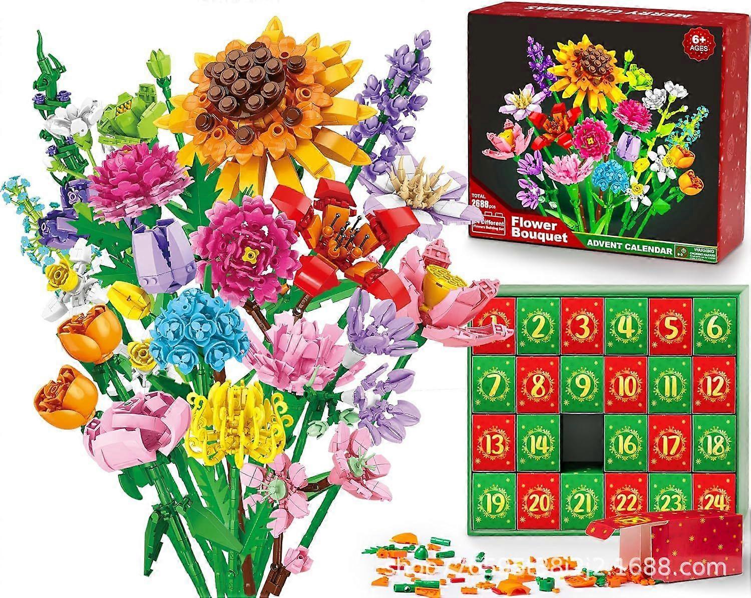 Flower Bouquet Christmas Countdown Bouquet Building Block Christmas Blind Box
