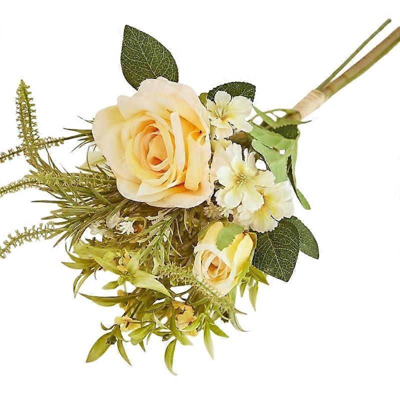 Fake Flowers Bouquet, Rose Artificial Silk Flowers Arrangement for Home, Kitchen, Wedding, Party Decor - Yellow Pink
