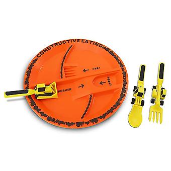 Bulldozer Excavator Shovel Toddler Plates Tableware Dining Set Baby Dishes Durable 3pcs Children's Cutlery Three Sets