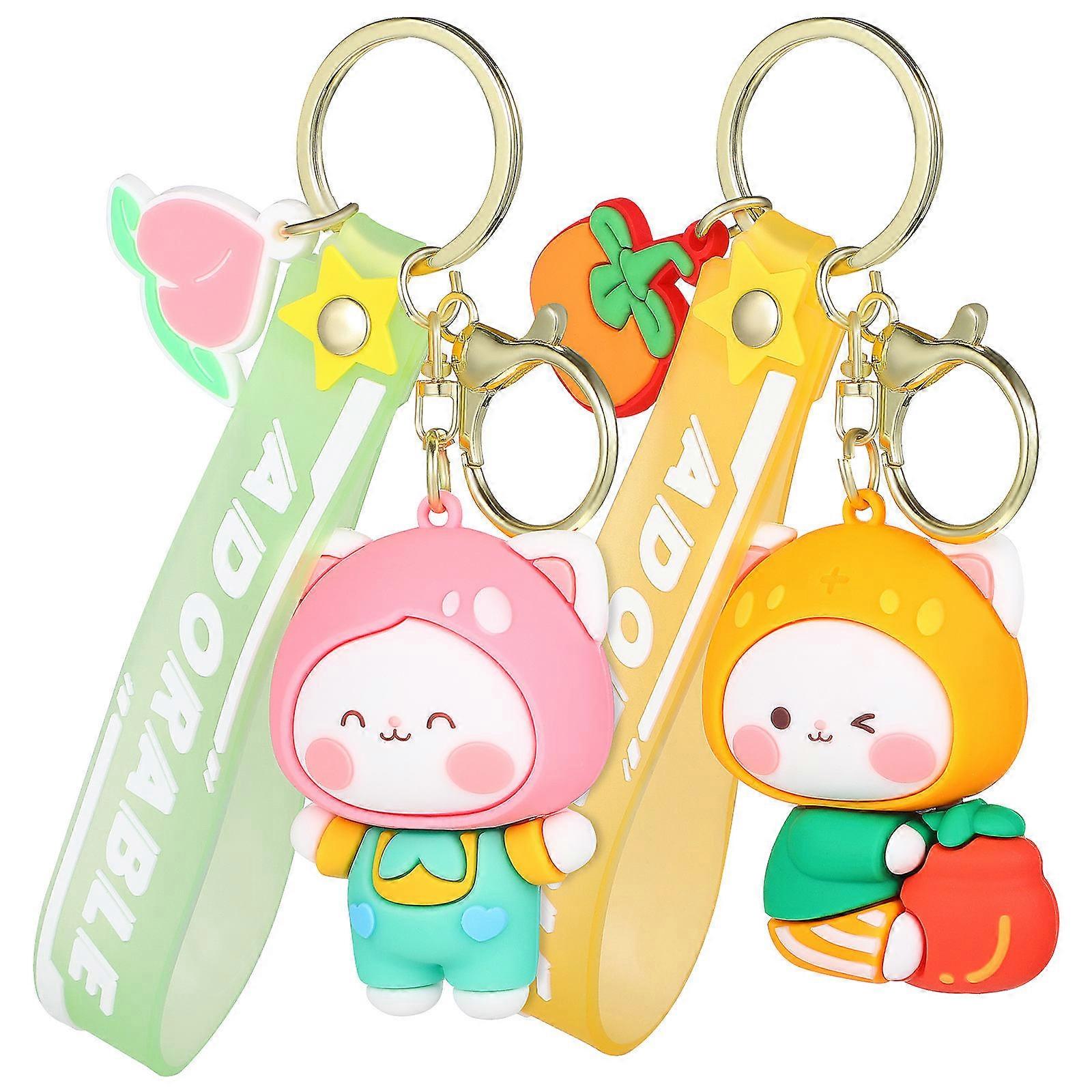 Cartoon Key Chain with Peach Persimmon Pendant for Decoration 10Pcs