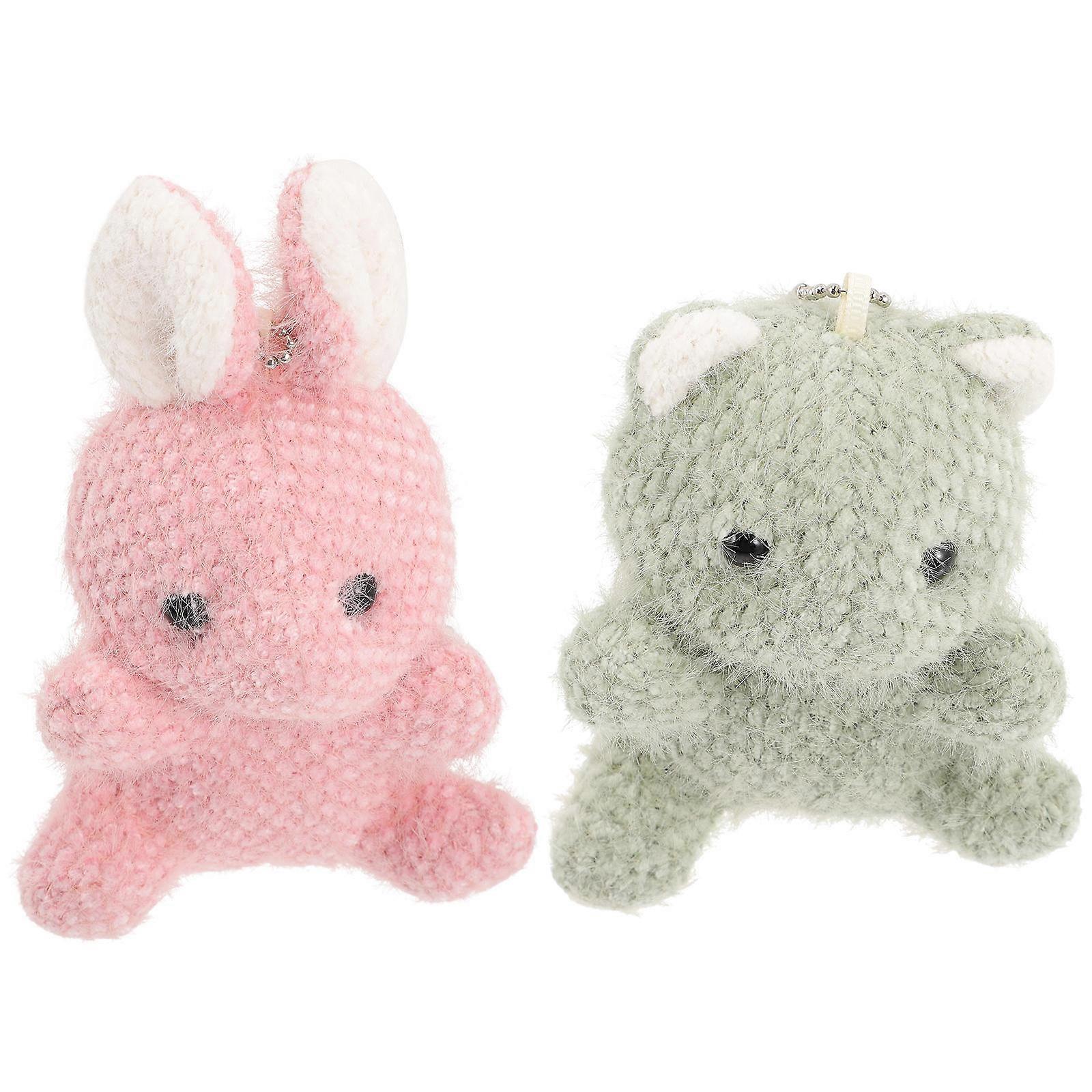 Stuffed Animal Keychain Rabbit Shape Doll For Women And Children Random Color Bag Pendant 2Pcs