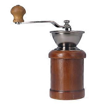 Coffee Grinder Manual Oak Stainless Steel Retro Ergonomic Crank Handle Conical Grinding Core Portable Coffee Bean Grinder Dark Color