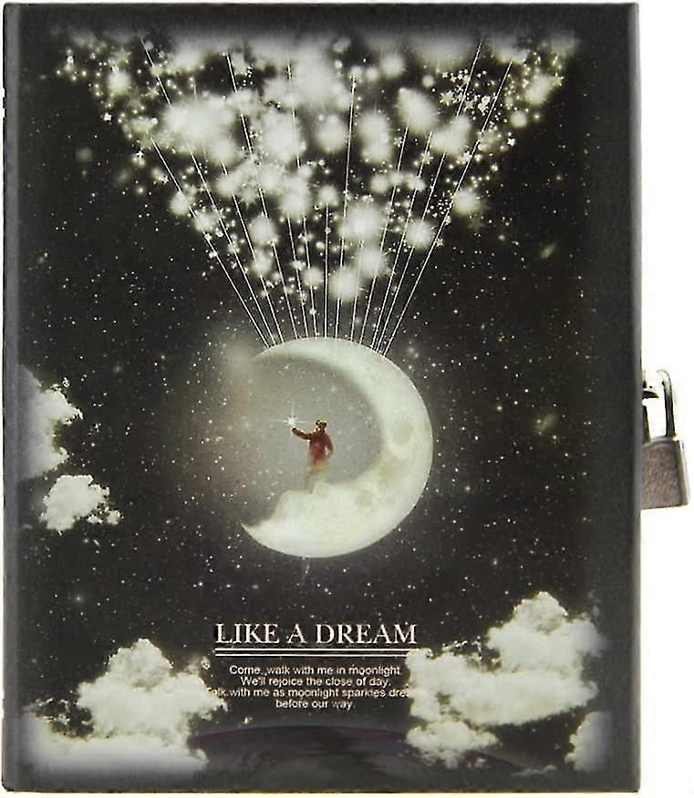 Secret Notebook Padlock with Lock Cover Notepad Lock with Key Padlock Cardboard (Yellow Moon)