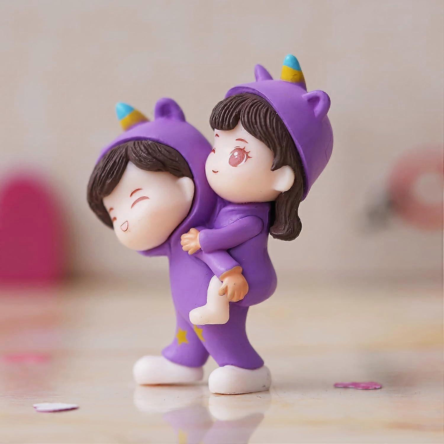 Purple Miniature Cute Couple Statue Girl on Boy's Shoulder Decorative Showpiece - Valentine Gift for Girlfriend, Boyfriend, Husband, Wife (Polyresin)