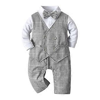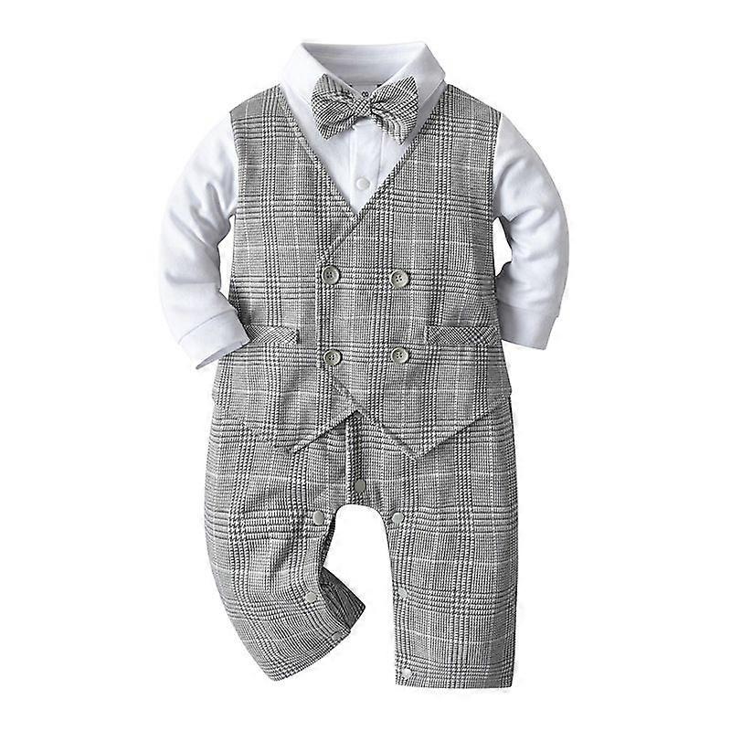 Baby Formal Rompers And Bow Tie Set,gentleman Style Clothing For 12-18Months Bo(1 piece, gray)